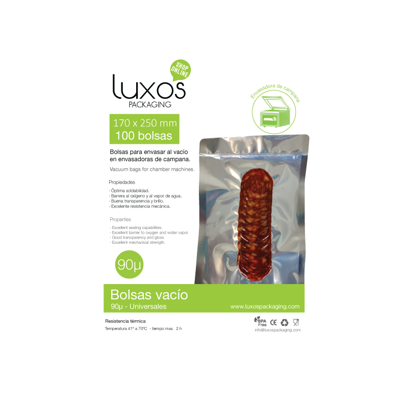 - Bolsas fabricadas con tecnología multicapa que permite un vacío de mayor calidad, alargando así la conservación de los alimentos y ofreciendo más resistencia contra la perforación.