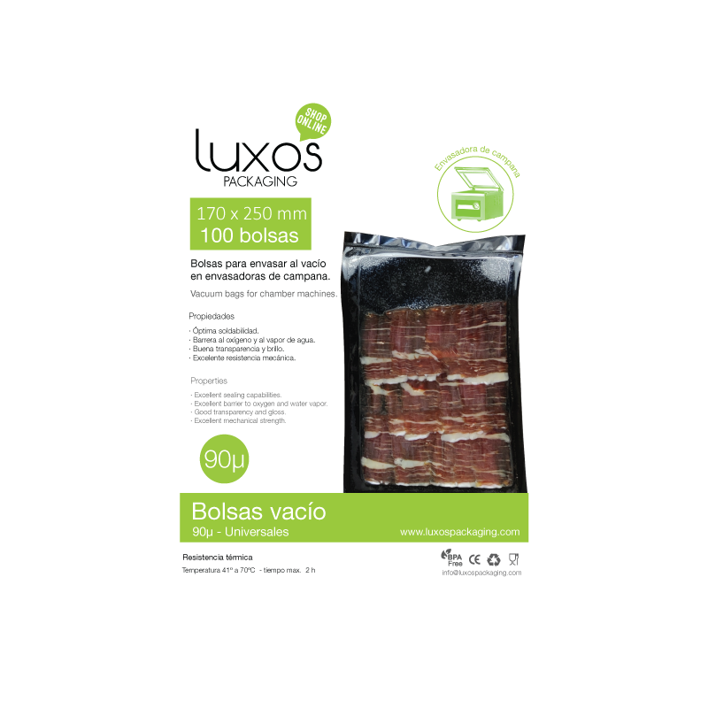 - Bolsas fabricadas con tecnología multicapa que permite un vacío de mayor calidad, alargando así la conservación de los alimentos y ofreciendo más resistencia contra la perforación.